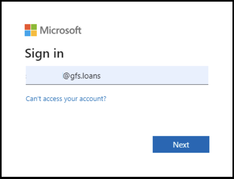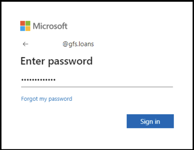 username@gfs.loans) - Result: Enter Password screen request appears