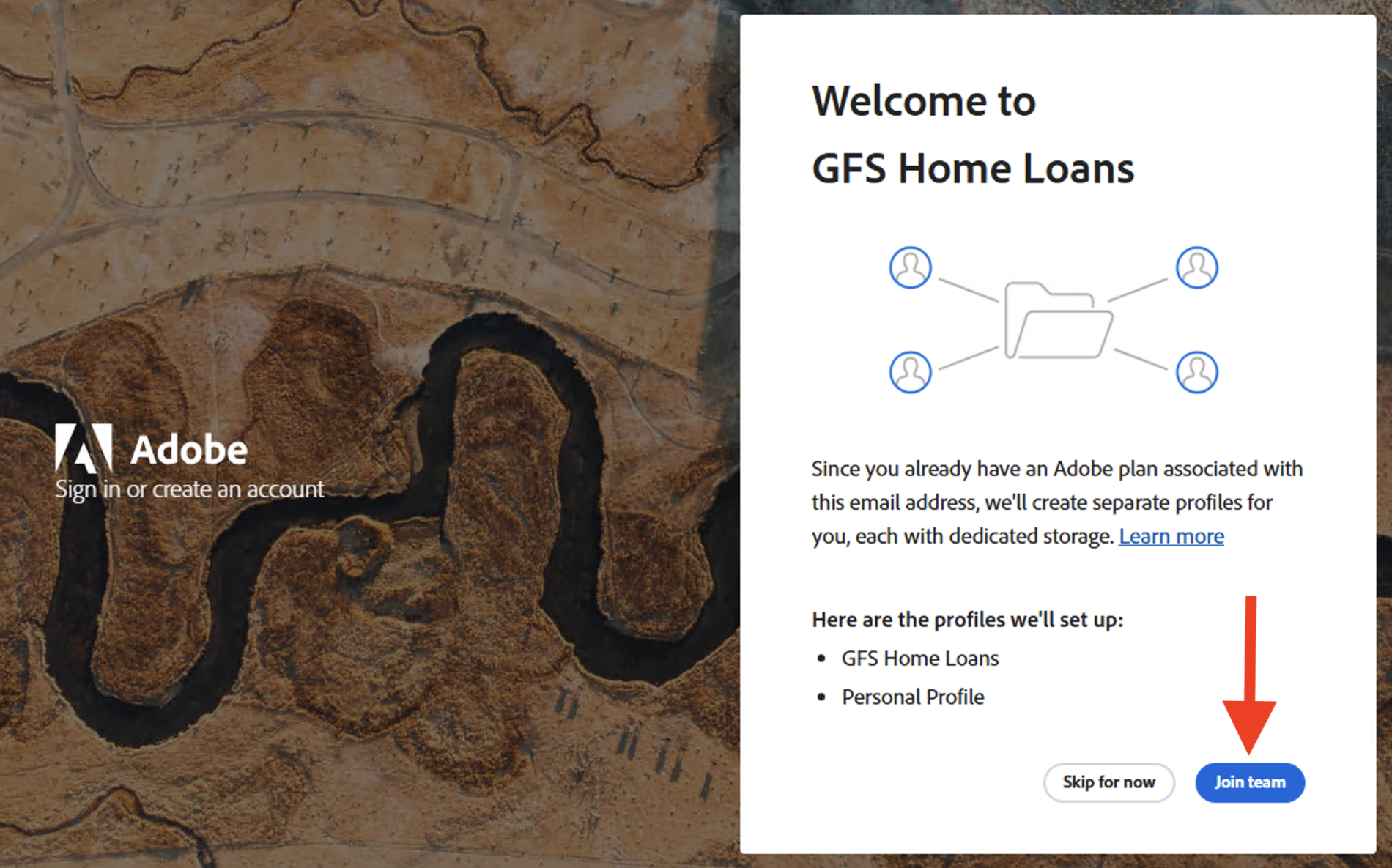 Click Join team to connect your Adobe Acrobat account with your organization's Microsoft account.